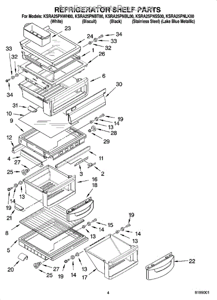 Parts for Kitchenaid KSRA25PNBL00: 03 - Refrigerator Shelf Parts