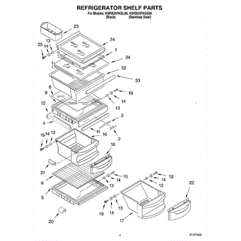 Parts for Kitchenaid KSRB25FKBL00: 03 - Refrigerator Shelf Parts