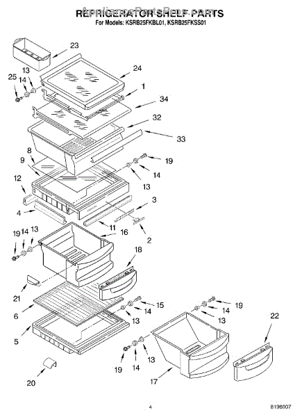 Parts for Kitchenaid KSRB25FKBL01: 03 - Refrigerator Shelf Parts