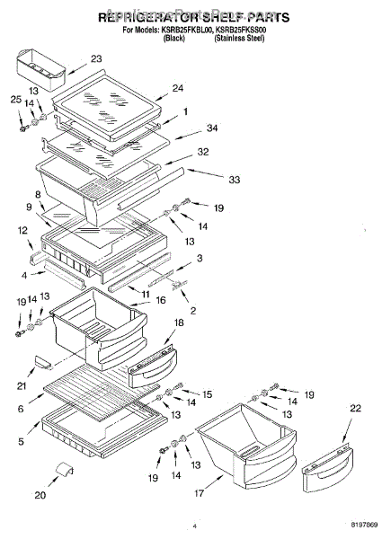 Parts for Kitchenaid KSRB25FKSS00: 03 - Refrigerator Shelf Parts