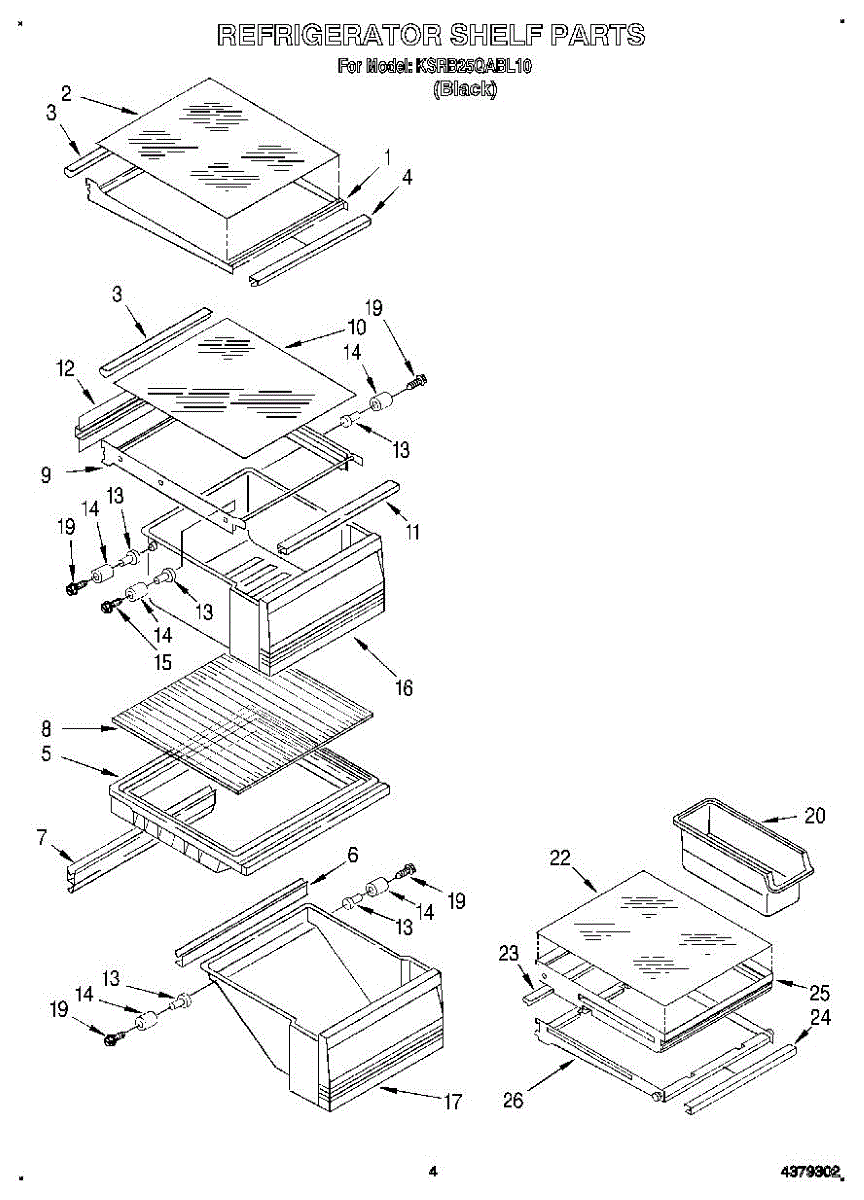 Parts for Kitchenaid KSRB25QABL10: 03 - Refrigerator Shelf Parts