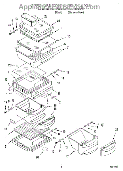 Parts for Kitchenaid KSRB25QGSS00: 03 - Refrigerator Shelf Parts