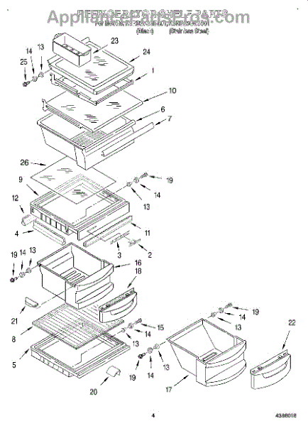 Parts for Kitchenaid KSRB25QGSS01: 03 - Refrigerator Shelf Parts