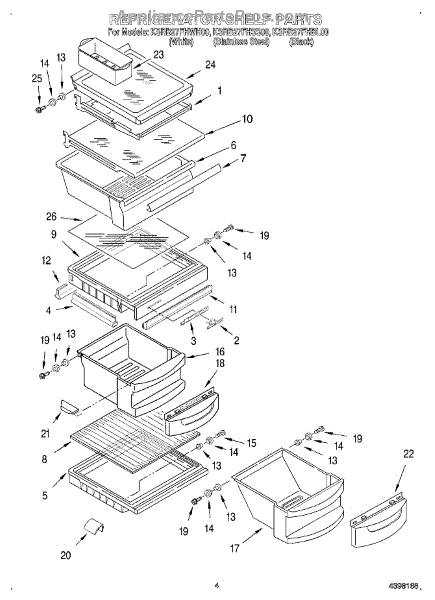 Parts for Kitchenaid KSRB27FHWH00: 03 - Refrigerator Shelf Parts