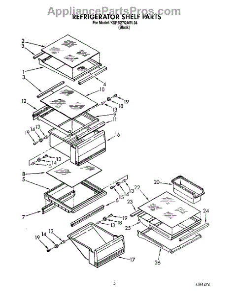 Parts for Kitchenaid KSRB27QABL04: 03 - Refrigerator Shelf Parts