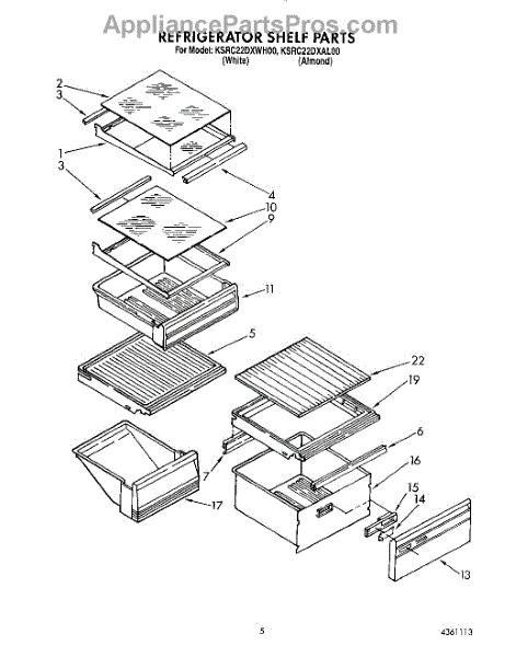 Parts for Kitchenaid KSRC22DXWH00: 03 - Refrigerator Shelf Parts