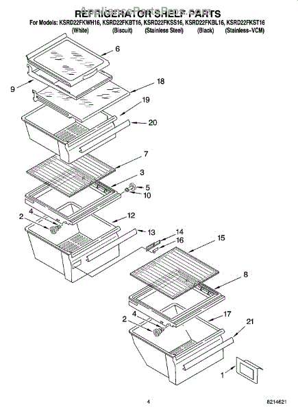 Parts for Kitchenaid KSRD22FKBL16: 03 - Refrigerator Shelf Parts