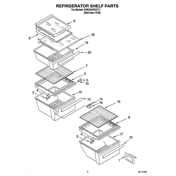 Parts for Kitchenaid KSRD22FKST17: 03 - Refrigerator Shelf Parts
