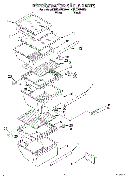Parts for Kitchenaid KSRD25FKBT01: 03 - Refrigerator Shelf Parts