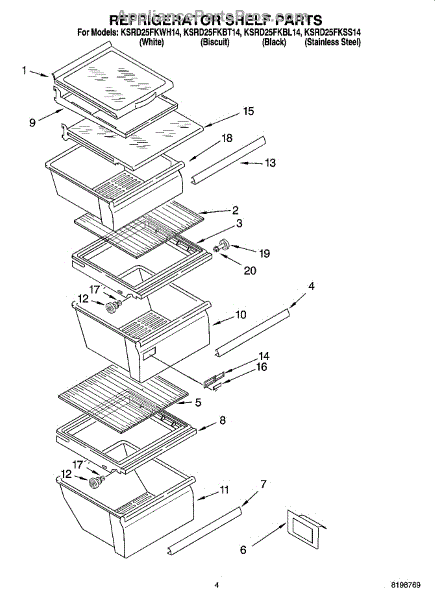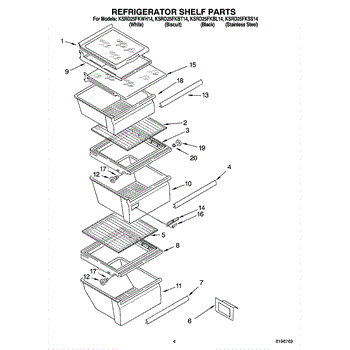 Parts for Kitchenaid KSRD25FKBT14: 03 - Refrigerator Shelf Parts