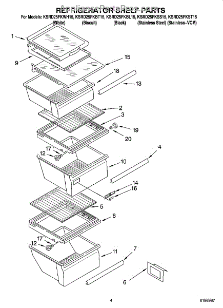Parts for Kitchenaid KSRD25FKBT15: 03 - Refrigerator Shelf Parts