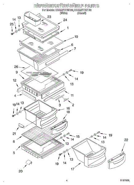 Parts for Kitchenaid KSRE27FHWH02: 03 - Refrigerator Shelf Parts