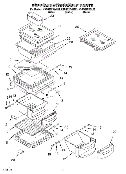 Parts for Kitchenaid KSRG22FKBT03: 05 - Refrigerator Shelf Parts