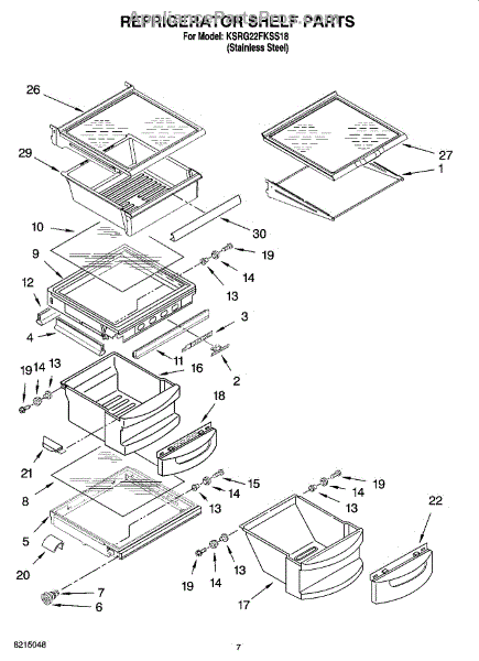 Parts for Kitchenaid KSRG22FKSS18: 05 - Refrigerator Shelf Parts
