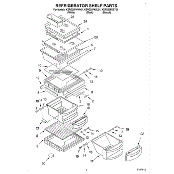 Parts for Kitchenaid KSRG25FKWH01: 03 - Refrigerator Shelf Parts