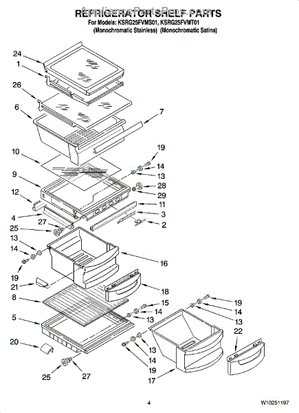 Parts for Kitchenaid KSRG25FVMT01: 03 - Refrigerator Shelf Parts