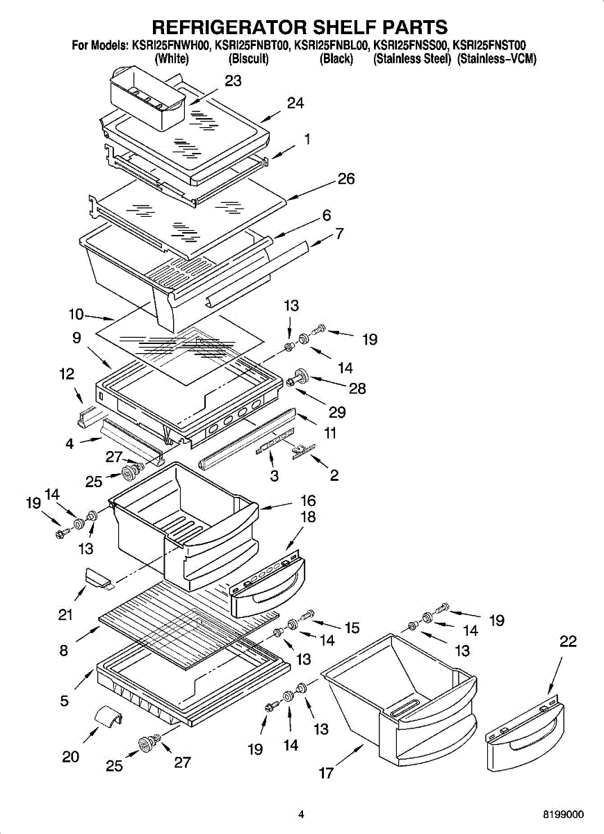 Parts for Kitchenaid KSRI25FNBT00: 03 - Refrigerator Shelf Parts