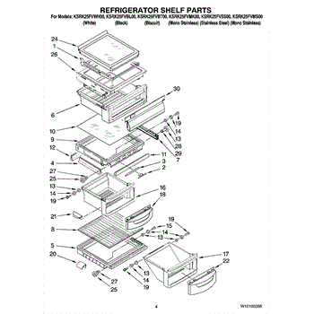 Parts for Kitchenaid KSRK25FVMS00: 03 - Refrigerator Shelf Parts