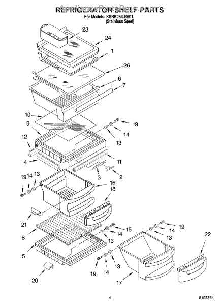Parts for Kitchenaid KSRK25ILSS01: 03 - Refrigerator Shelf Parts
