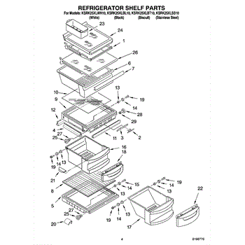 Parts for Kitchenaid KSRK25XLBL10: 03 - Refrigerator Shelf Parts