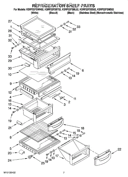 Parts for Kitchenaid KSRP22FSBT02: 05 - Refrigerator Shelf Parts