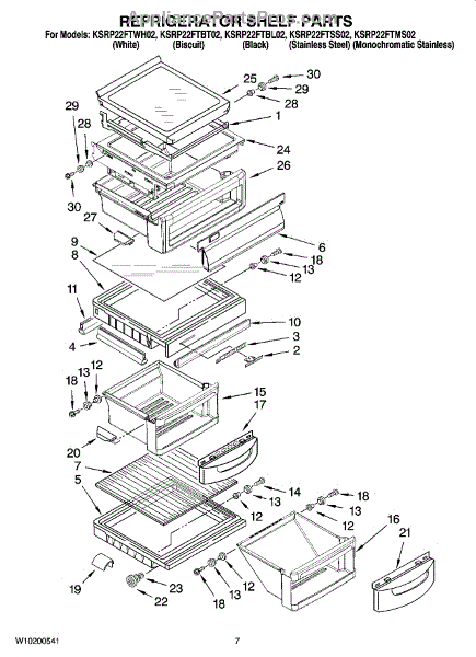 Parts for Kitchenaid KSRP22FTBT02: 05 - Refrigerator Shelf Parts