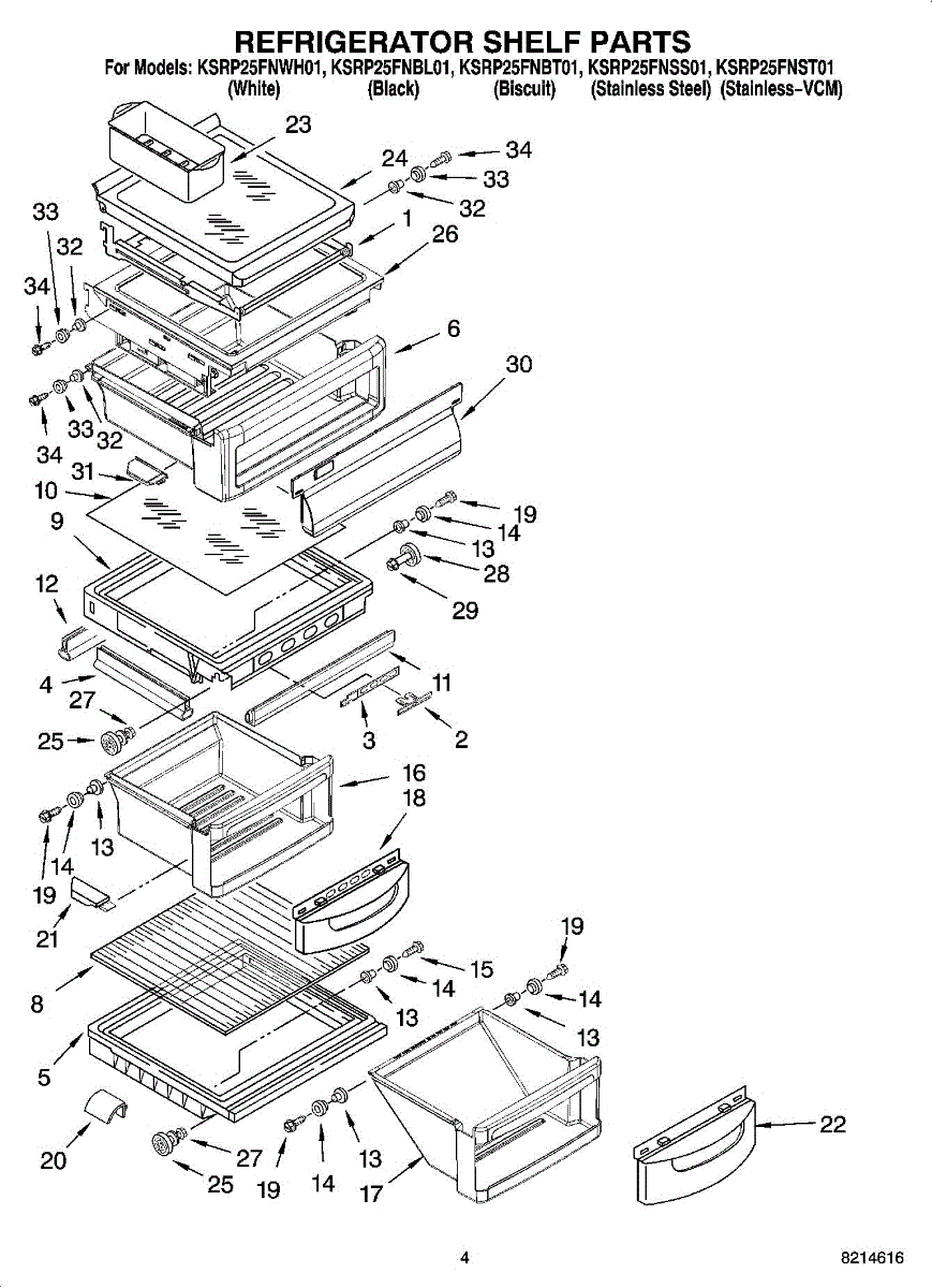 Parts for Kitchenaid KSRP25FNWH01: 03 - Refrigerator Shelf Parts