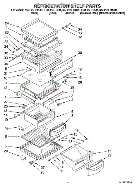Parts for Kitchenaid KSRP25FTSS01: 03 - Refrigerator Shelf Parts