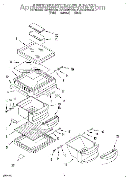 Parts for Kitchenaid KSRP27QDWH01: 03 - Refrigerator Shelf Parts
