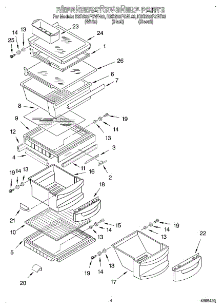 Parts for Kitchenaid KSRS22FGBT02: 03 - Refrigerator Shelf Parts