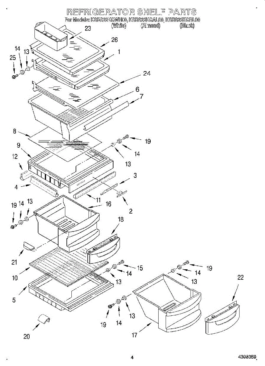 Parts for Kitchenaid KSRS22KGAL00: 03 - Refrigerator Shelf Parts