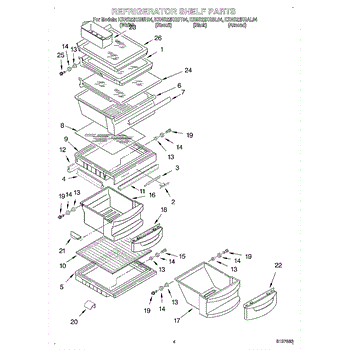 Parts for Kitchenaid KSRS22KGAL04: 03 - Refrigerator Shelf Parts