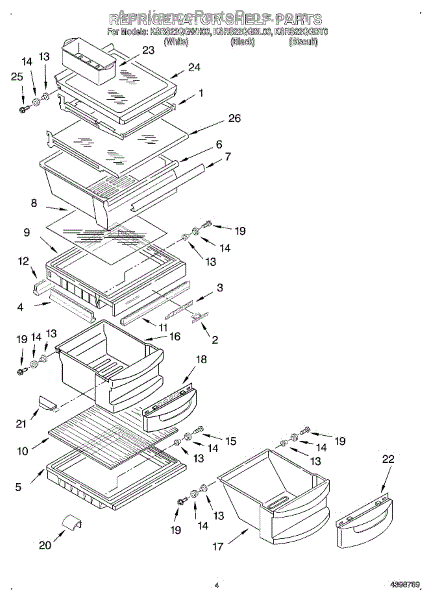 Parts for Kitchenaid KSRS22QGBL03: 03 - Refrigerator Shelf Parts