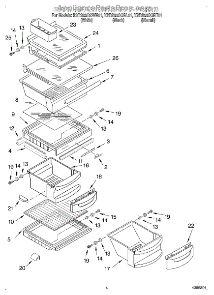 Parts for Kitchenaid KSRS22QGBT01: 03 - Refrigerator Shelf Parts