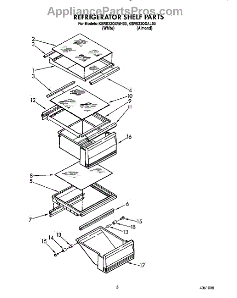 Parts for Kitchenaid KSRS22QXWH00: 04 - Refrigerator Shelf Parts