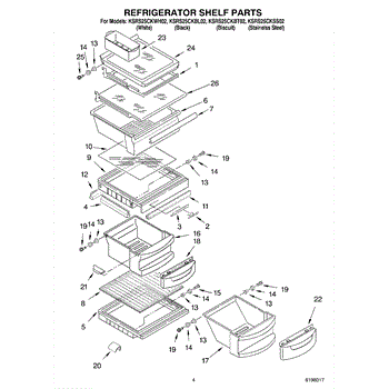 Parts for Kitchenaid KSRS25CKSS02: 03 - Refrigerator Shelf Parts
