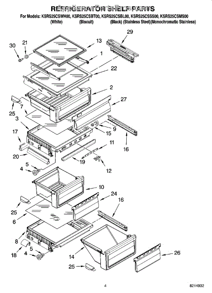 Parts for Kitchenaid KSRS25CSBT00: 03 - Refrigerator Shelf Parts
