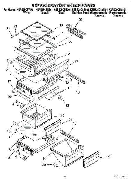 Parts for Kitchenaid KSRS25CSBT01: 03 - Refrigerator Shelf Parts