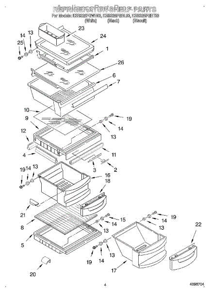 Parts for Kitchenaid KSRS25FGWH03: 03 - Refrigerator Shelf Parts