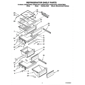 Parts for Kitchenaid KSRS25FTSS03: 03 - Refrigerator Shelf Parts