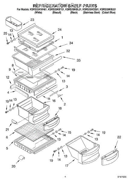Parts for Kitchenaid KSRS25IKWH01: 03 - Refrigerator Shelf Parts