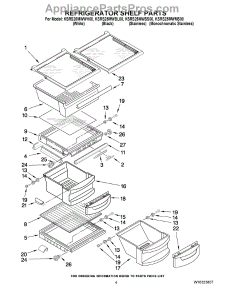 Causes of a bad shelf can be normal wear and tear over time from repeated removal and washing. Accidental drops or impact damage may also affect structural integrity. This OEM Whirlpool part can also be used on Maytag, KitchenAid, Jenn-Air, Amana, Magic Chef, Admiral, Norge, Roper, and Kenmore/Sears brand appliances.