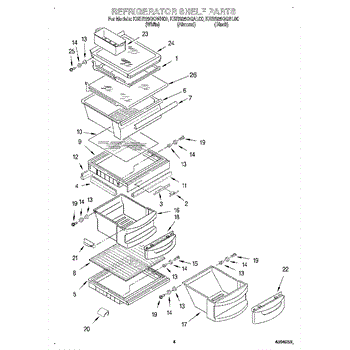 Parts for Kitchenaid KSRS25QGBL00: 03 - Refrigerator Shelf Parts