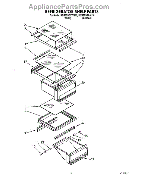 Parts for Kitchenaid KSRS25QXAL10: 03 - Refrigerator Shelf Parts