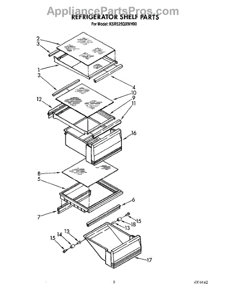 Parts for Kitchenaid KSRS25QXWH00: 04 - Refrigerator Shelf Parts