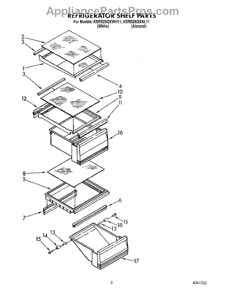 Parts for Kitchenaid KSRS25QXWH11: 04 - Refrigerator Shelf Parts