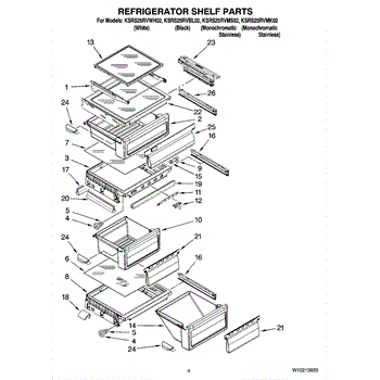 Parts for Kitchenaid KSRS25RVBL02: 03 - Refrigerator Shelf Parts