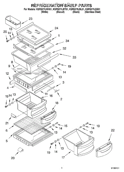 Parts for Kitchenaid KSRS27ILBL01: 03 - Refrigerator Shelf Parts