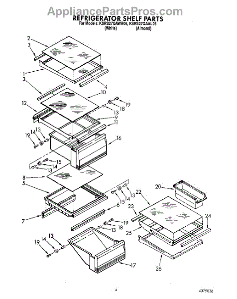 Parts for Kitchenaid KSRS27QAWH06: 03 - Refrigerator Shelf Parts