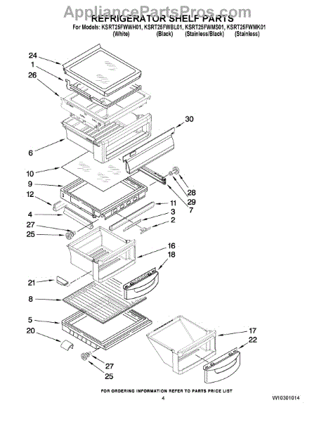 Parts for Kitchenaid KSRT25FWWH01: 03 - Refrigerator Shelf Parts